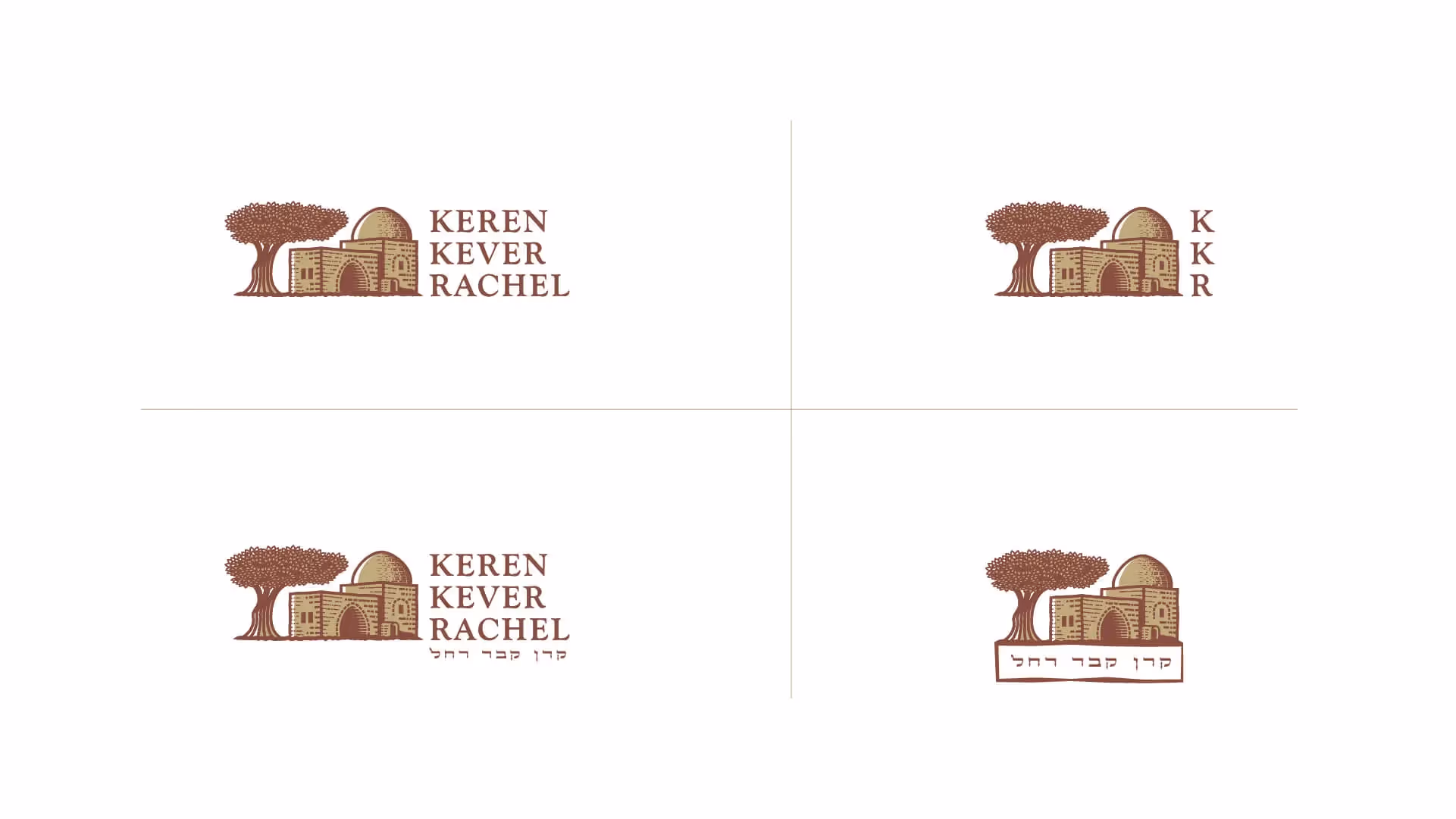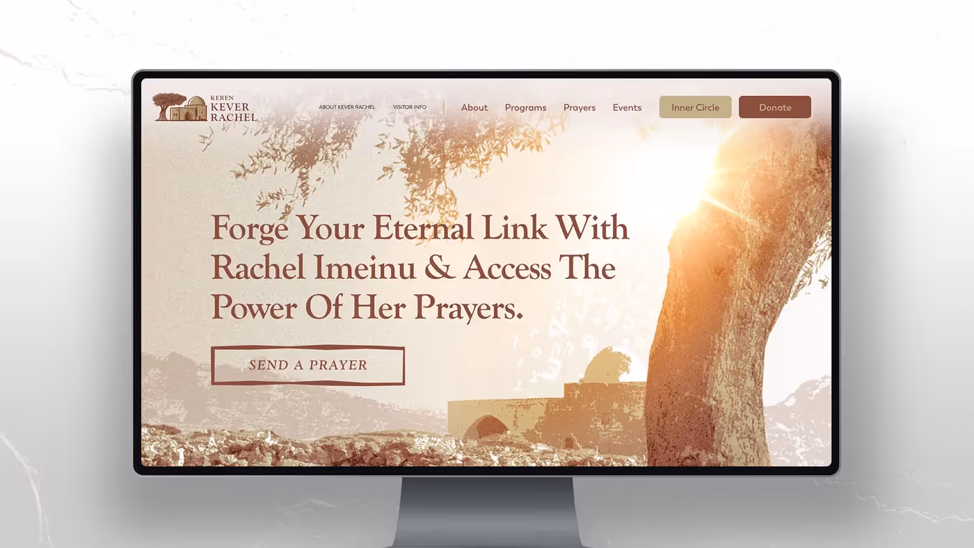The Visual identity is based off of Rachels tomb as it is among the most widely painted landmarks in Jewish art. This helps Keren Kever Rachel be easily recognized and supports their aspired positioning as the ‘go to’ organization for everything Kever Rachel. The warm color theme reflects the organizations caring nature and are also colors associated with the actual tomb, its landscape and history.