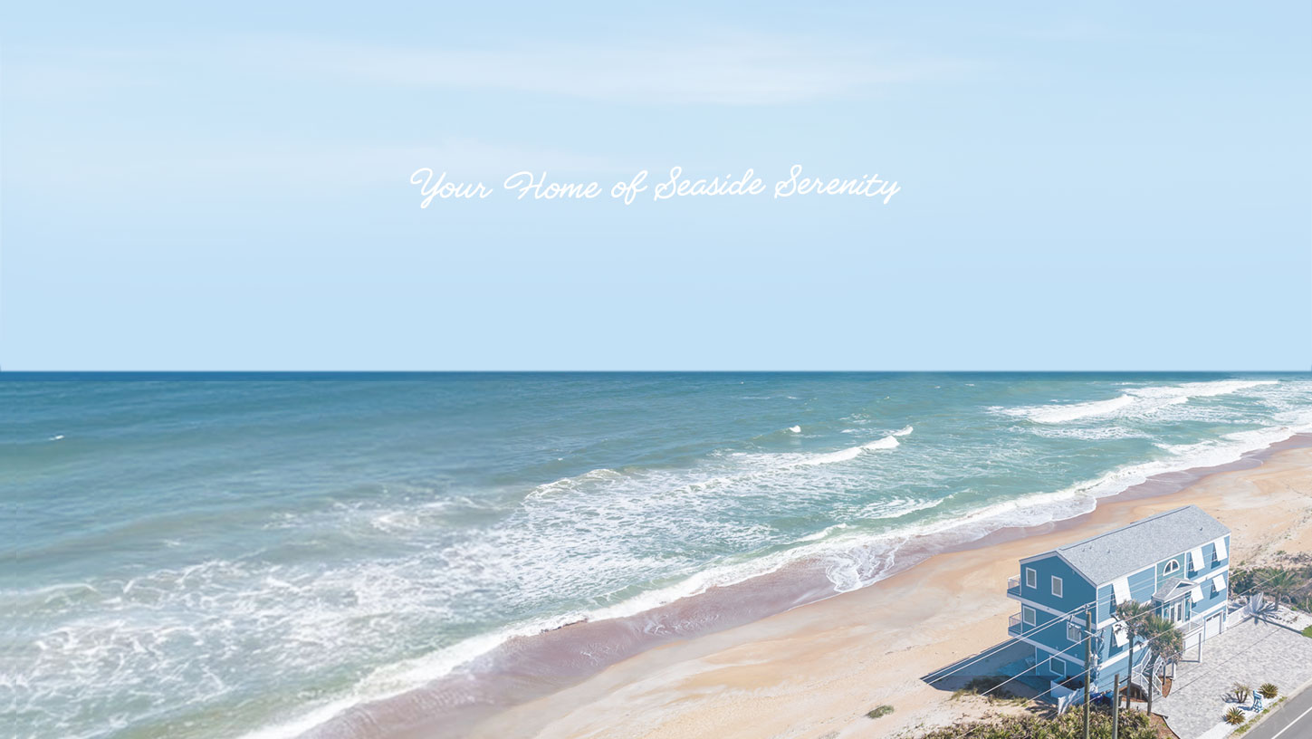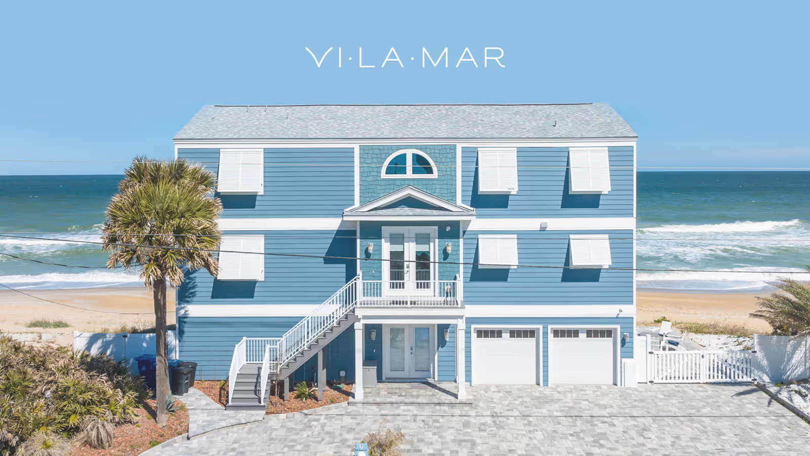 Vi·La·Mar is a contemporary oceanfront vacation rental in Florida, situated directly on the beach with expansive coastal views. The name draws from Spanish — “La Mar” meaning “the sea” — while “Vi·La” subtly forms “villa,” connecting the experience to its setting.